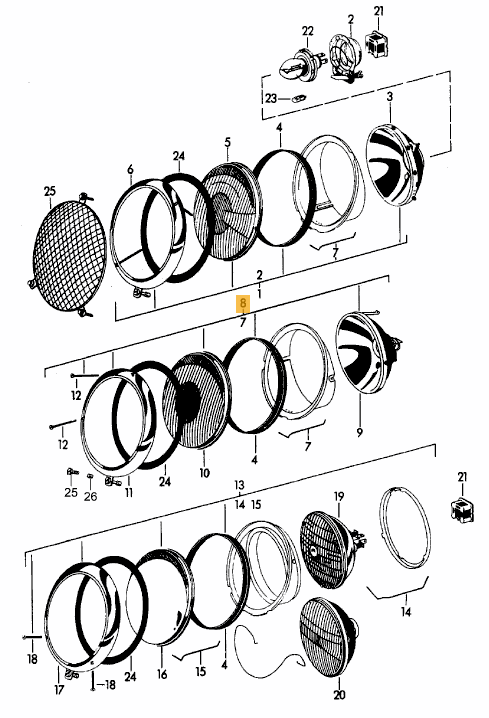 1 x Headlamp Assembly with Chrome Trim (RHD Bosch Lens) – all 356